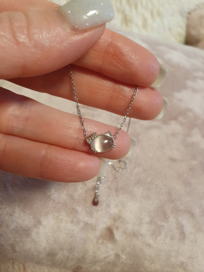 Серебряное шейное украшение с фианитами и синтетическим кошачьим глазом