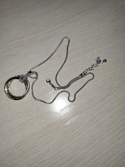 Цепочка с подвеской, смотрится оригинально, можно носить и а серебром, и с лимонным золотом... Рекомендую...