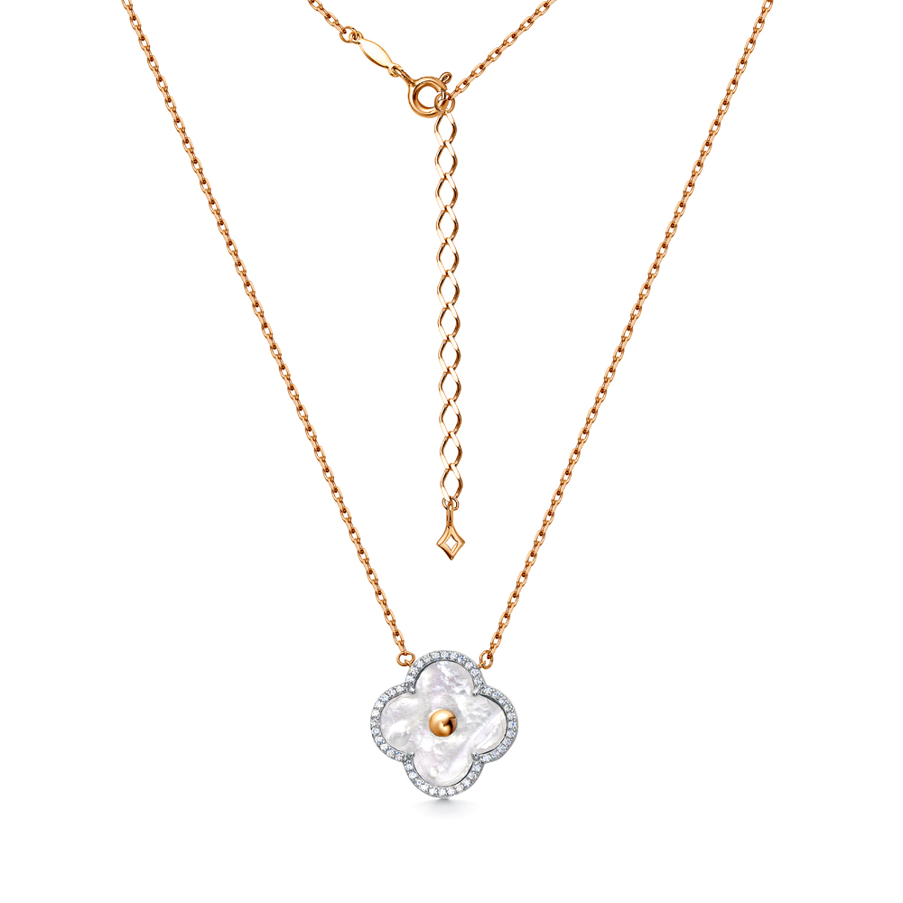 Золотое шейное украшение с фианитами и перламутром природным