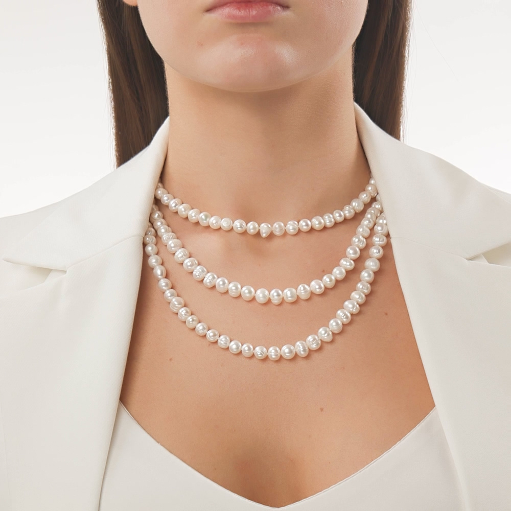 Очень милое ожерелье речного жемчуга, формы дуплет (с полосочками в середине) , купила носить кросс боди на рубашки и свитера. Доставка за 30 минут. Бусинки ровные небольшие, упаковка хорошая, в красивом боксе, производство российское !