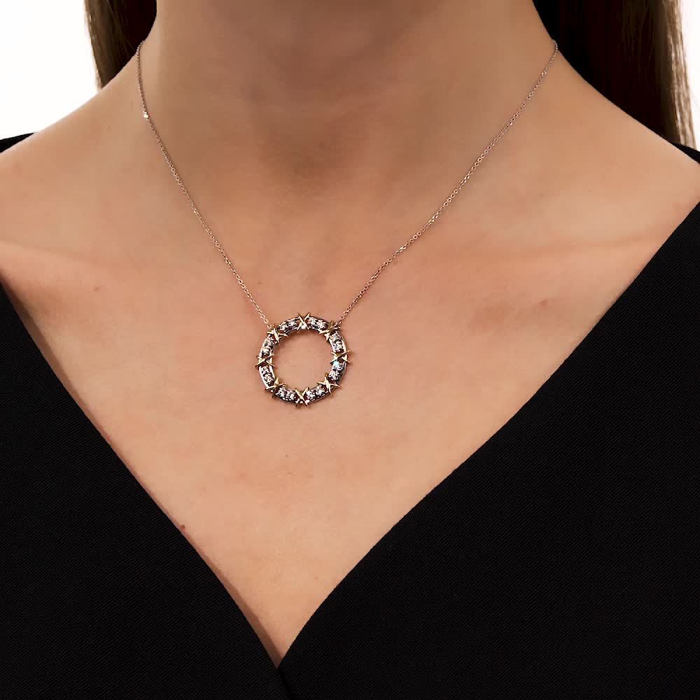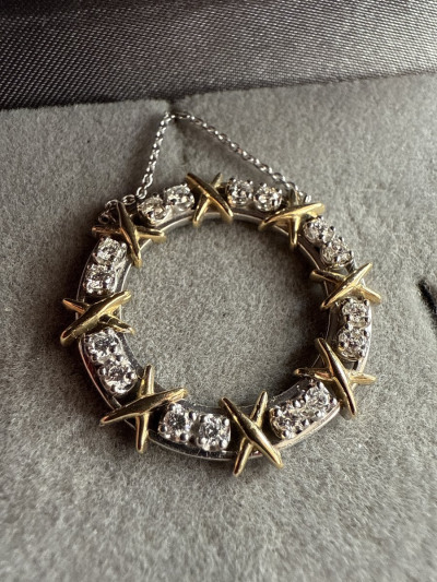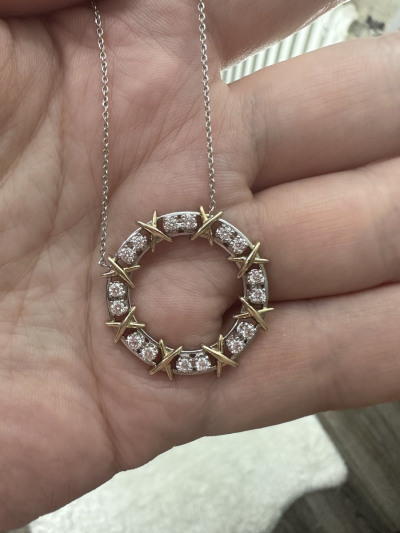 Шейное укр. с 16 бриллиантами природными, 0.47 карат, огранка круг 57 граней, цвет 4, чистота 6, тип огранки А;