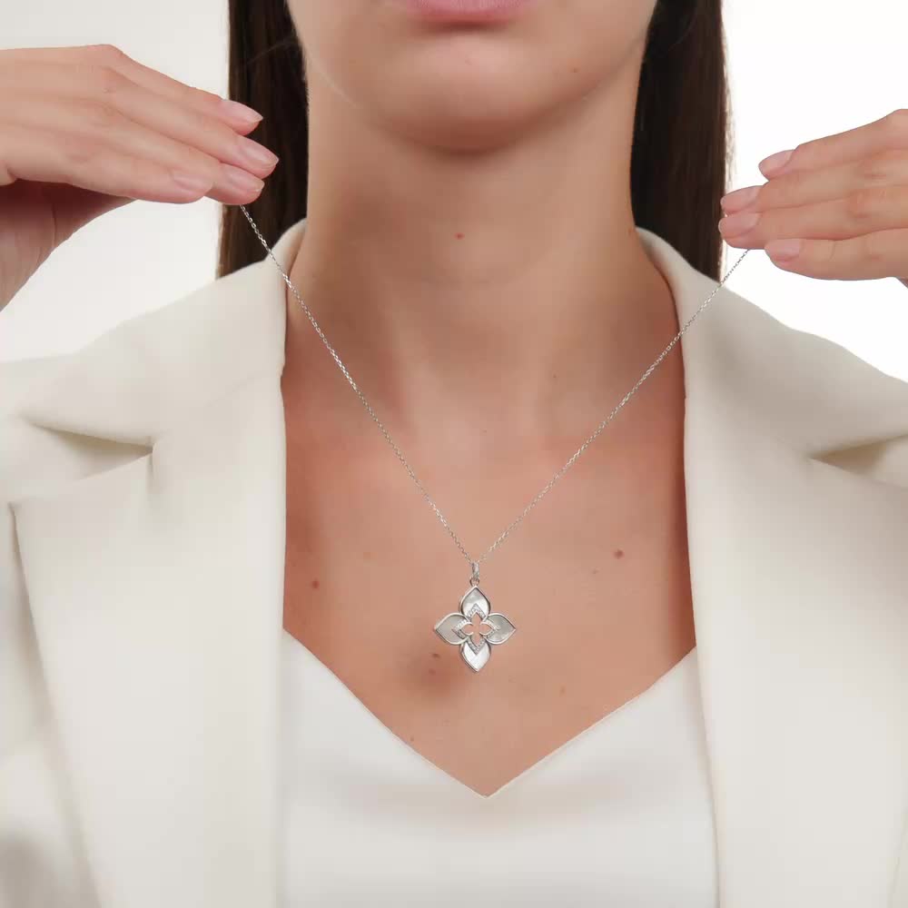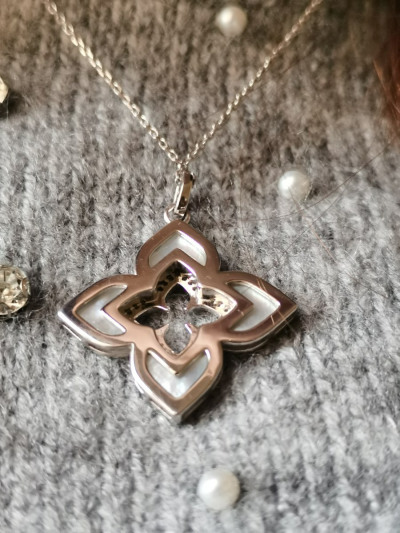 Хороший кулончик, можно регулировать длину цепочки, перламутр красиво блестит в белом золоте.