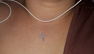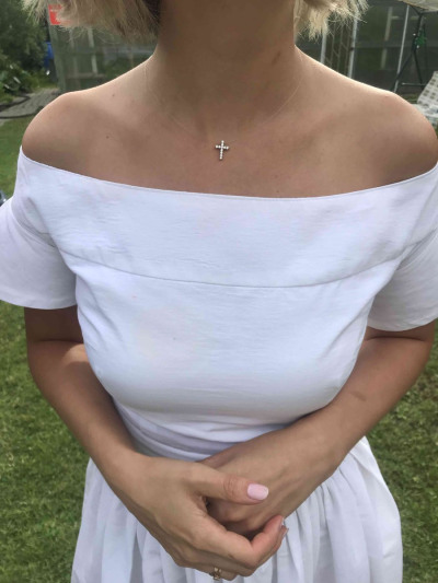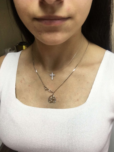 Крестик небольшой, но смотрится симпатично, мне очень понравился. Потом к нему закажу многослойную цепочку и я думаю будет смотреться вообще шикарно.