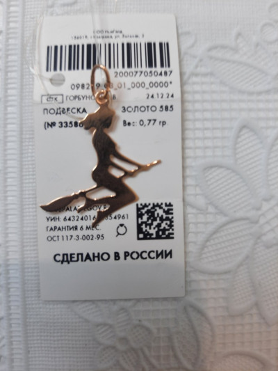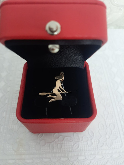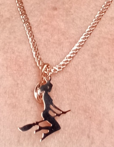 Золотая подвеска ведьма, необычная подвеска, была бы потолще было бы вообще отлично. Покупкой довольна.