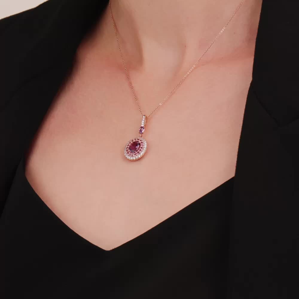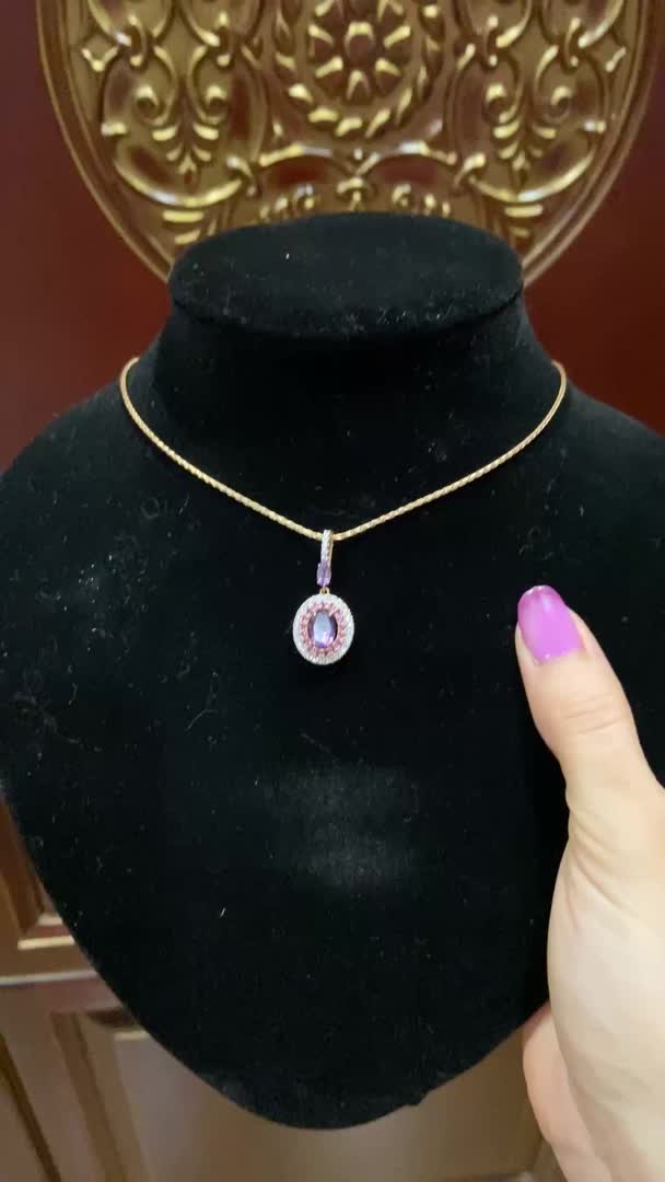 Золотая подвеска с фианитами, родолит, аметистами природными и родолит природными