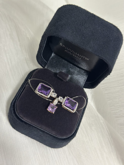 Ожидала больше размером.Под серьги не подходит. Нужен больше. Заказала второй. Надеюсь подойдёт. На тонкой цепочке очень красиво смотрится. В наборе если вообще круто. Бриллианты малюсенькие но очень блестящие 🤩Пришёл быстро. Красивый камень аметист. Рекомендую покупать набором.
