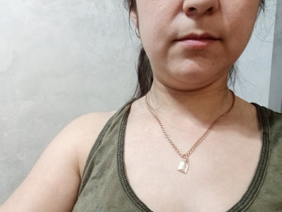 Миниатюрная, как вы и хотела под мою цепочку и крестик, можно носить постоянно не снимая, на теле не чувствуется потому что маленькая, совместимы с громоздкими украшения. Я купила её чтобы не снимать, когда ношу другие украшения