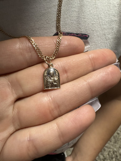 Симпатичная иконка, узнали что это семистрельная иконка Богородицы. Купили дочери, легкая, аккуратная, не будет цепляться как крестик