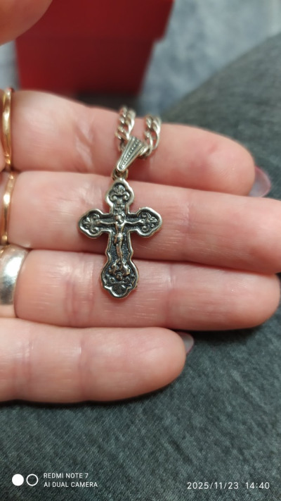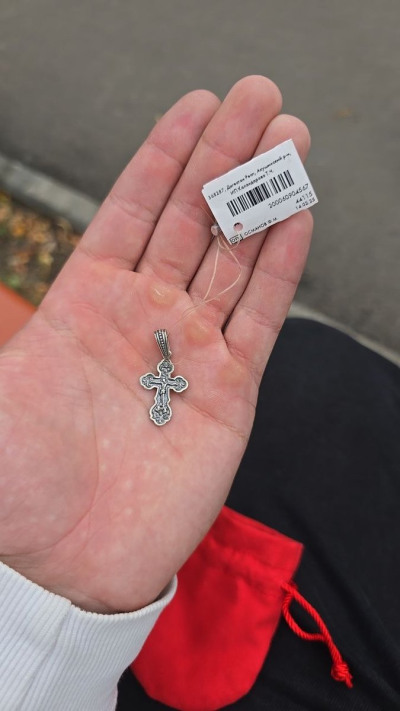 Зашла сегодня в магазин и сразу пал взор на этот крестик - аккуратный, с чернением, не мелкий и не большой. Мужу в подарок купила с цепочкой. Ему понравилось.