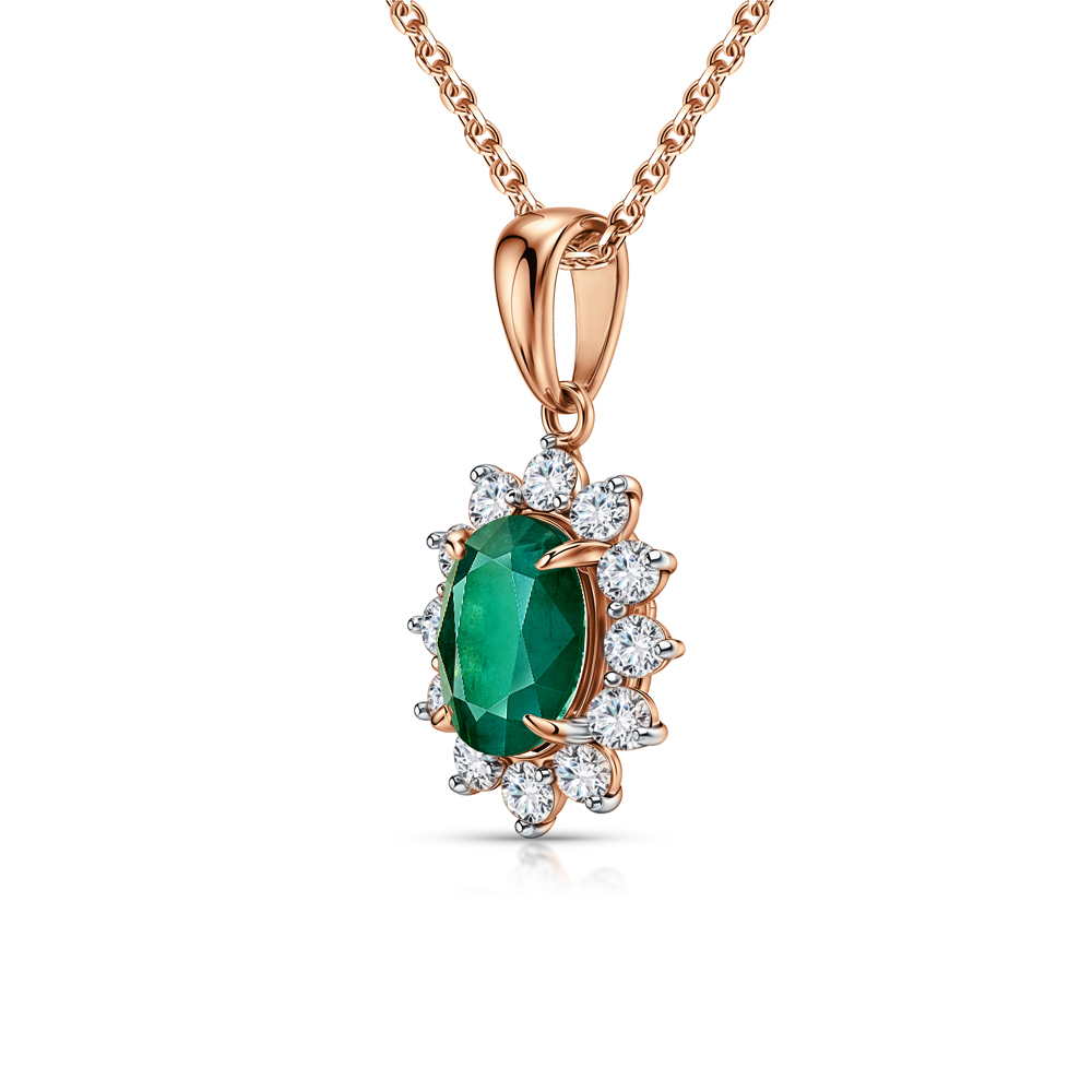 Золотая подвеска с бриллиантами выращенными и изумрудами выращенными