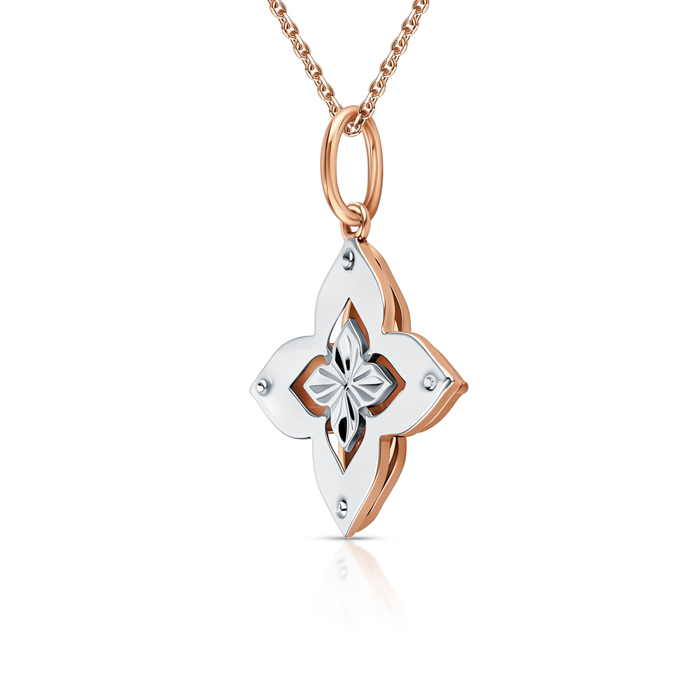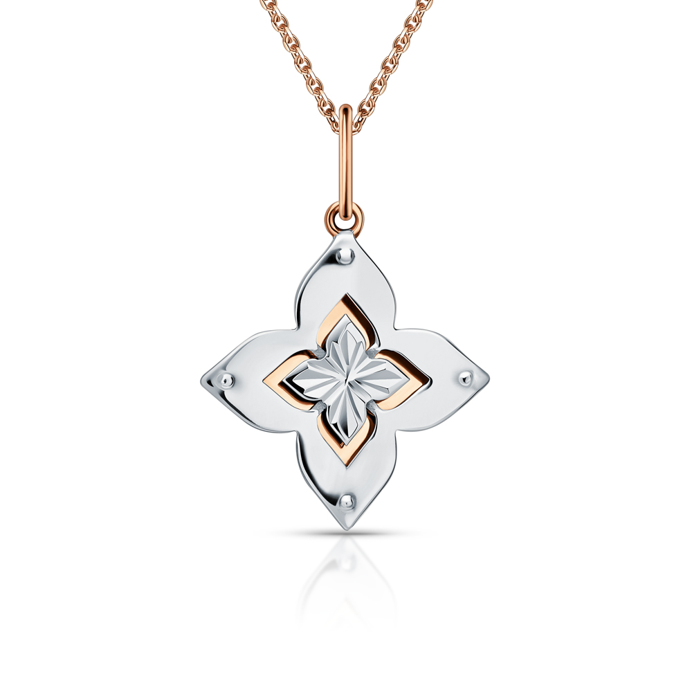 Современные украшения, объединяющие яркость розового и строгость белого золота. Такой двухцветный дизайн создает выразительный контраст, подчеркивая объем и изысканность. Каждое из них имеет уникальный характер: вы можете выбрать отдельный акцентный предмет или собрать гармоничный комплект из подвески, кольца или серег бренда Московского Цепевязального Завода.