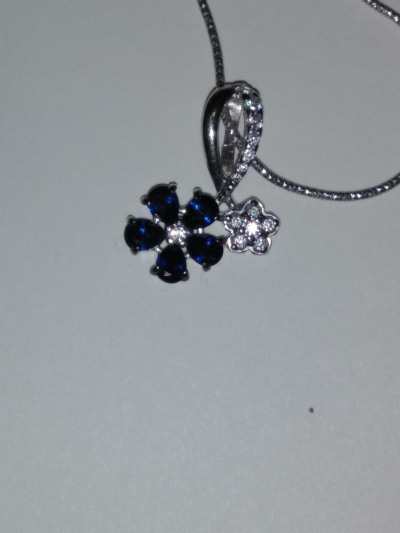 Красивый синий цветочек. Камешки блестят и переливаются. Очень приятная подвеска.