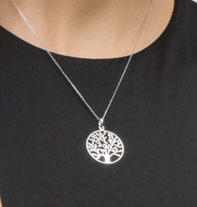 Круглая подвеска из серебра. В виде дерева. Изделие не мелкое. Будет хорошо смотреться с разным стилем одежды.