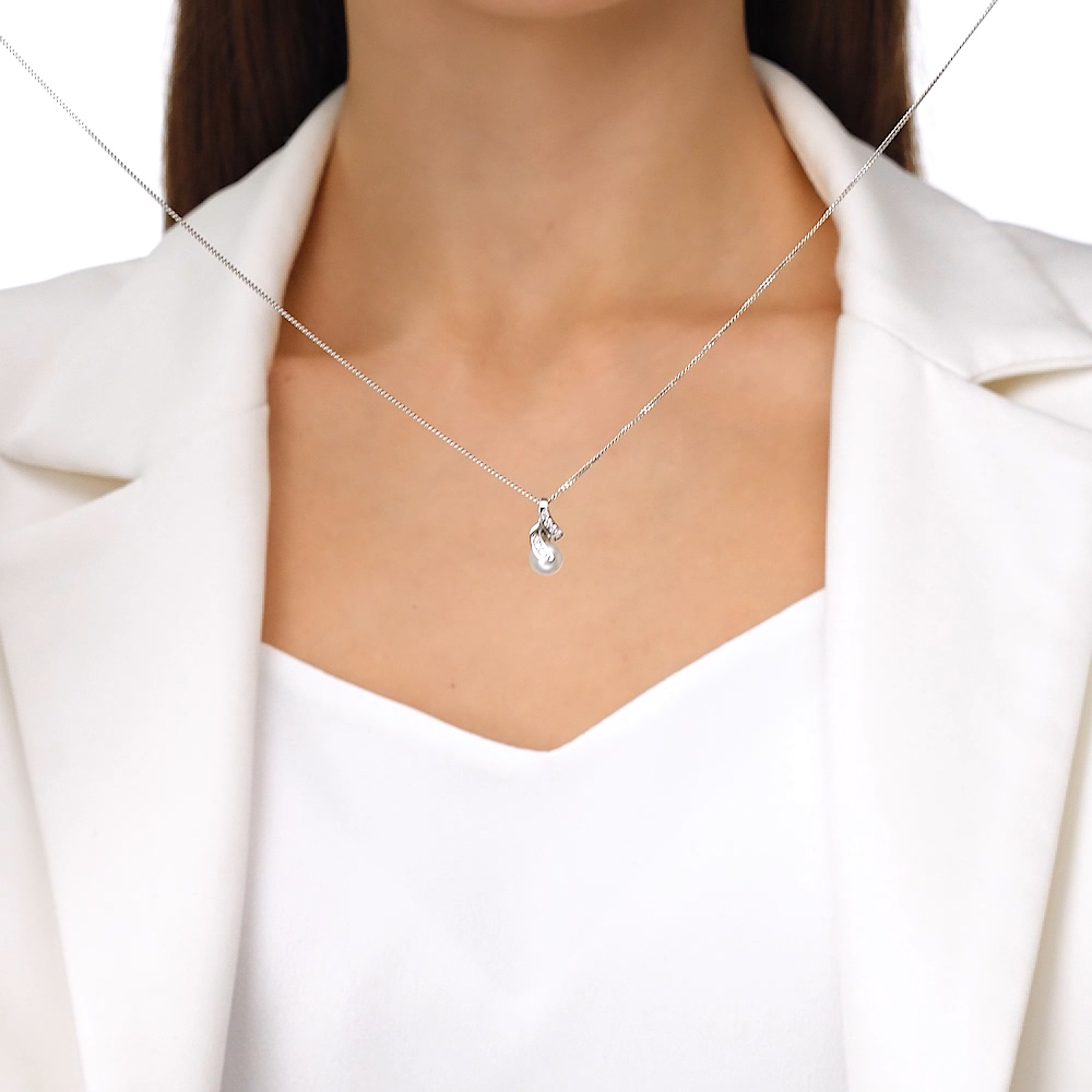 Серебряная подвеска с жемчугом и фианитами