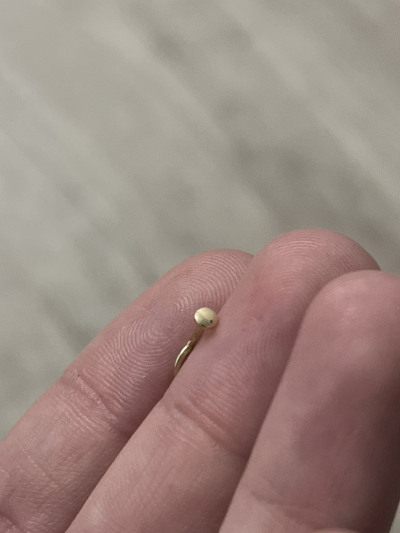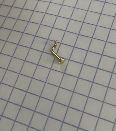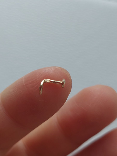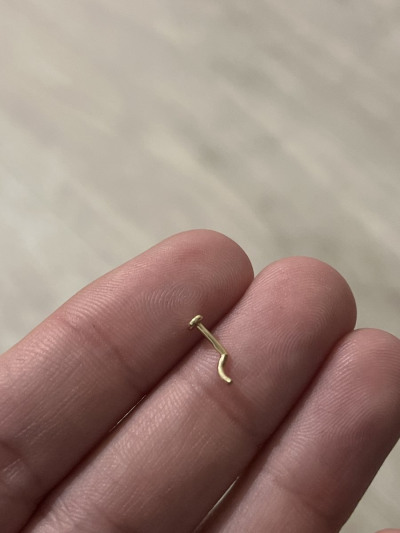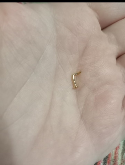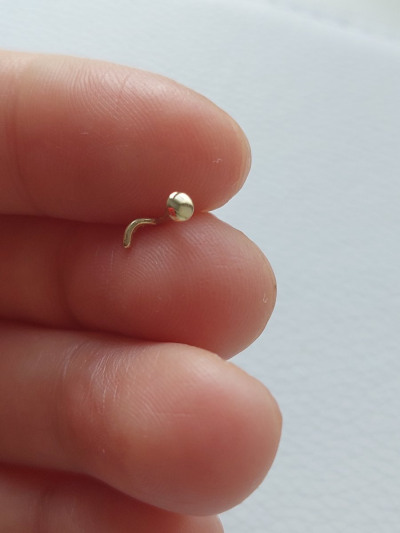Маленький аккуратный пирсинг для подростка. Золото жёлтое, не лимонное, смотрится в носике очень хорошо.