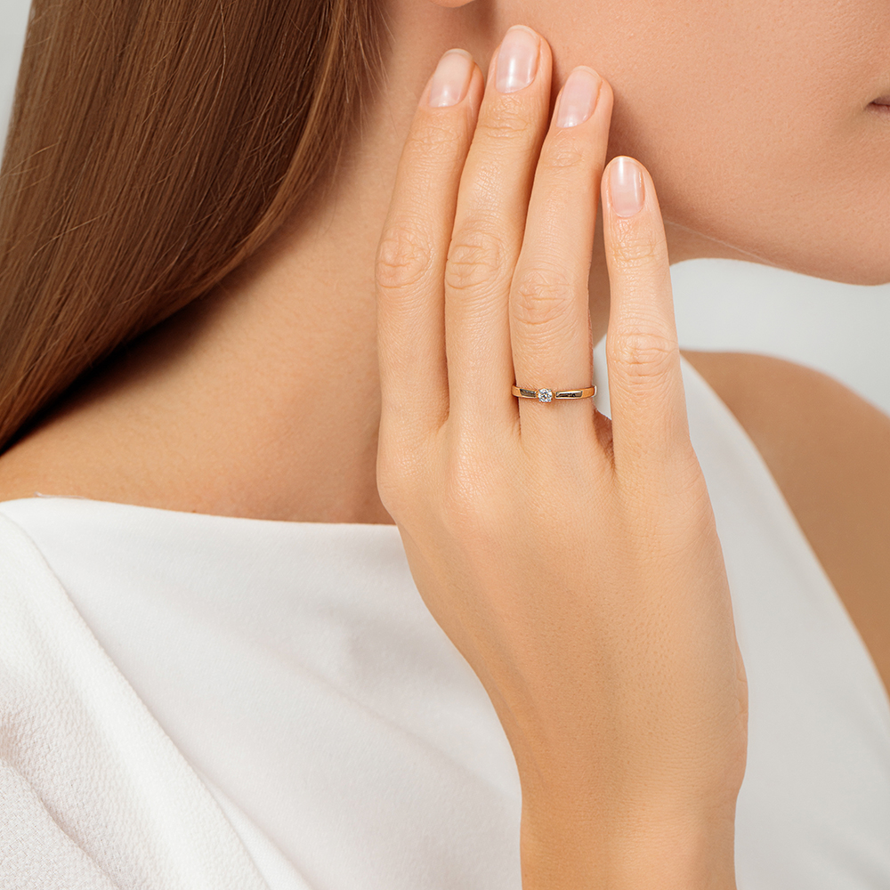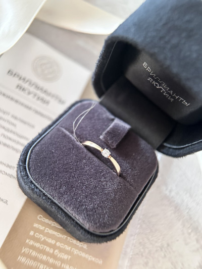 Кольцо с 1 бриллиантом природным, 0.08 карат, огранка круг 57 граней, цвет 3, чистота 6, тип огранки А;