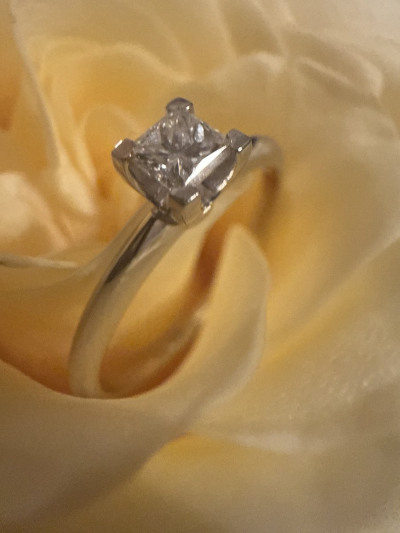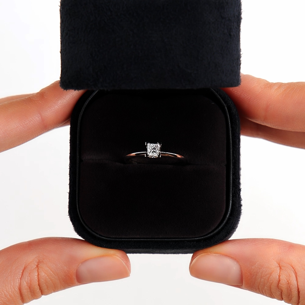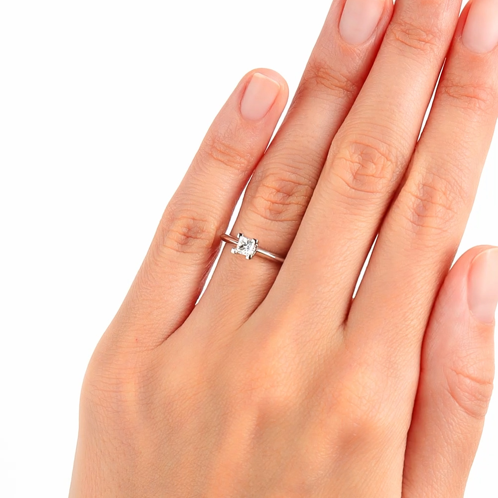Кольцо с 1 бриллиантом природным, 0.24 карат, огранка принцесса 65 граней, цвет 3, чистота 6, тип огранки А;