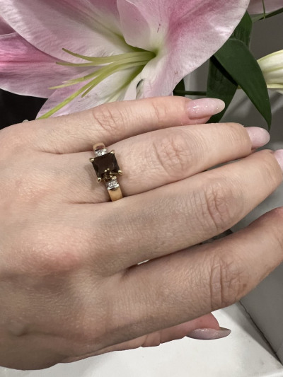 Золотое кольцо с бриллиантами природными и кварцем природным