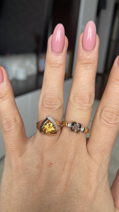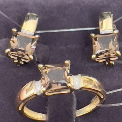 Красивый комплект , стильный дизайн, смотрится дорого!!! Обод кольца не тонкое, а прям приличной толщины, камень кварц дымчатый чистый и цвет необычный, красивый!! На каждый день буду носить, потому что не навязчиво смотрится при этом очень эффектно. Спасибо консультанту Ангелине за ее внимательный подход и разъяснения в ходе покупки, вместе с ней выбрала дополнительно отдельно от комплекта еще шикарное кольцо с желтым цитрином!!!