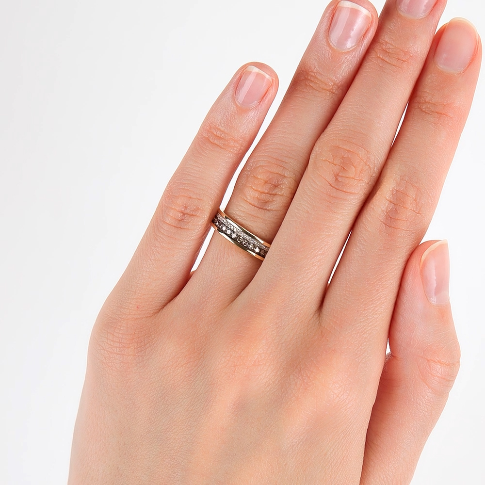 Обожаю кольца такого плана. Моя шкатулка пополнилась кольцом с коньячными бриллиантами. Есть сходство с обручальным.