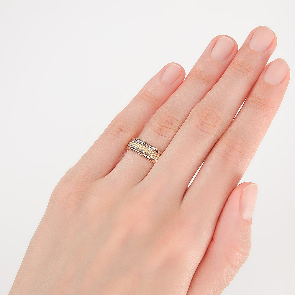 Пишу отзыв спустя полтора года покупки! Кольцо необычно красивое, увесистое, золото не тонкое! Не цепляется, царапин на ней не видно, особого ухода не требует. Лимонный цвет золота очень красиво переливается, не потускнел☝️ я планировала взять кольцо дорожку с бриллиантом, но так как у мужа выбор пал на это кольцо, консультант магазина тоже рассказала плюсы и минусы, решили взять все же эти и нисколько не пожалели! Советую, не пожалеете!