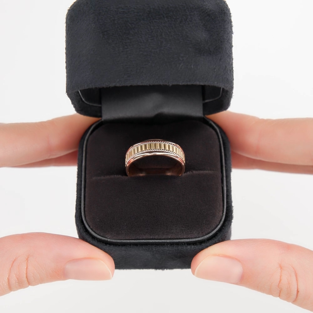 Закруглённая внутренняя поверхность снижает давление на палец и исключает дискомфорт даже при длительном носке. В отличие от других моделей, такие кольца имеют меньшую площадь соприкосновения с кожей — это делает их более удобными в течение дня.