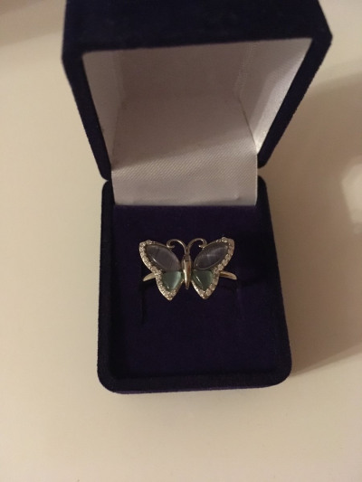 Серебряное кольцо с фианитами и кошачьим глазом