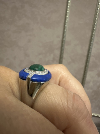 Серебряное кольцо с малахитом, лазуритами и фианитами