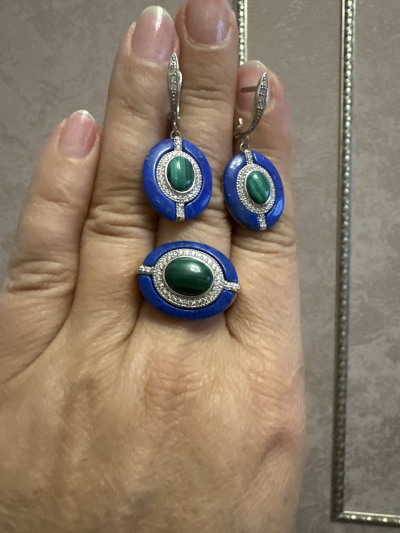 Приобрела в комплект к серьгам - для образа «русская краса»:) зелень малахита и синева лазурита прекрасно сочетаются и гармонично собраны в комплекте из серебра. Рекомендую !!