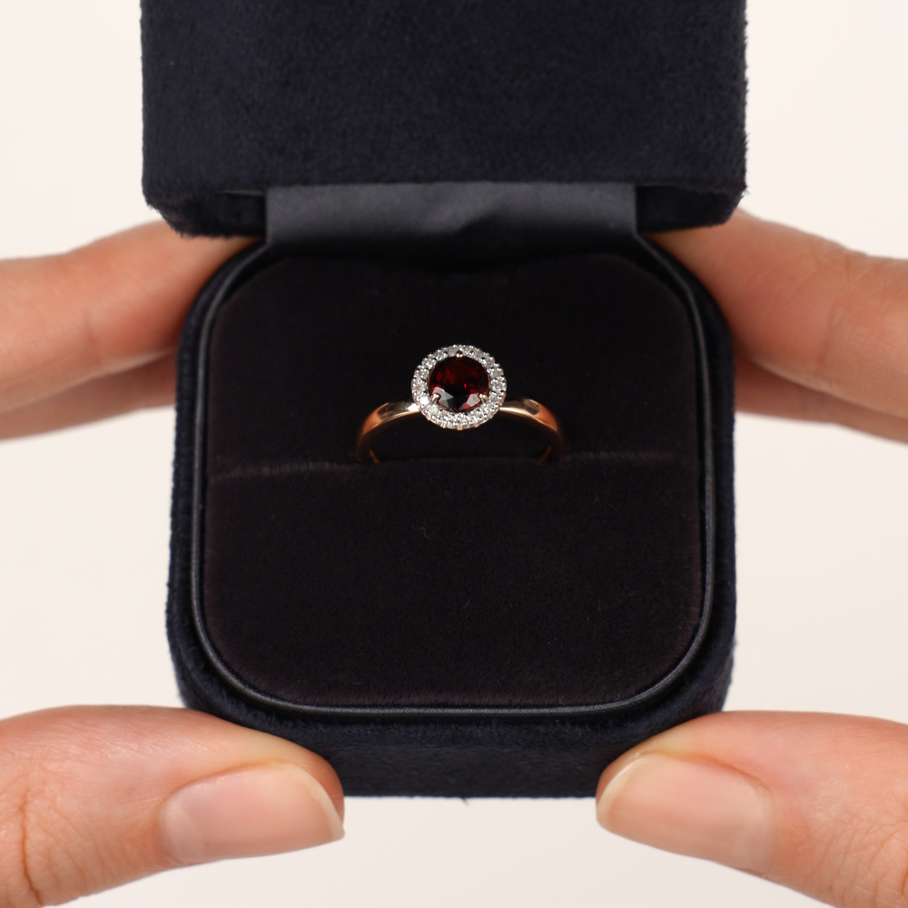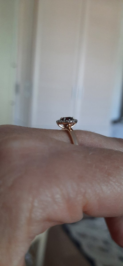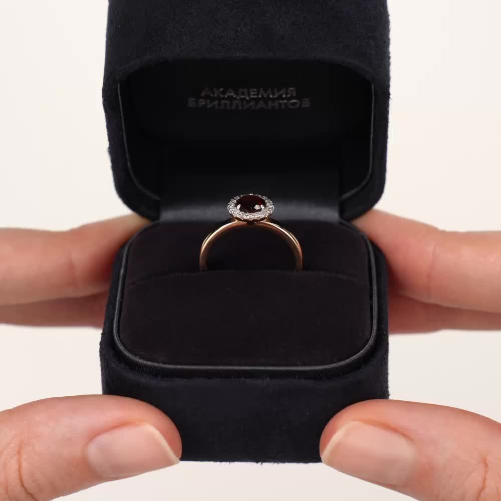 Колечко нежное, красивое. Гранат с окружении с бриллиантами - супер блестит