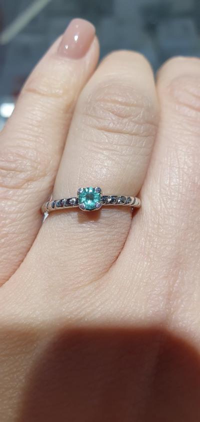 Серебряное кольцо с изумрудом подбирала к подвеске с изумрудом. Удалось подобрать по цвету и прозрачности камня . очень довольна