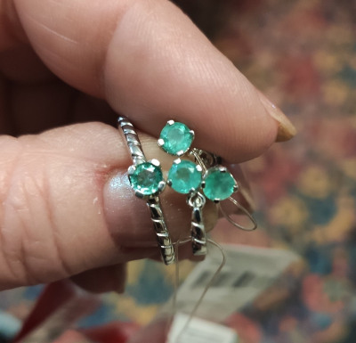 До того, как увидела это кольцо, мне казалось, что мои подвеска и гвоздики - самые лучшие, потому что с лазурным оттенком изумрудиков. Из десятка колец одного артикля попалось с таким же, остальные - зелёные, выбирала долго, умучилась. Но оно оказалось ещё и с полностью прозрачным изумрудом! Даже видны все прожилки в камне. Надеюсь, это не трещинки. Зато как бликует, не сравнить с мутными камнями. И на прежних своих любимчиков по этой причине больше смотреть не хочу - муть голубая. Беда, совсем беда с этими изумрудами.