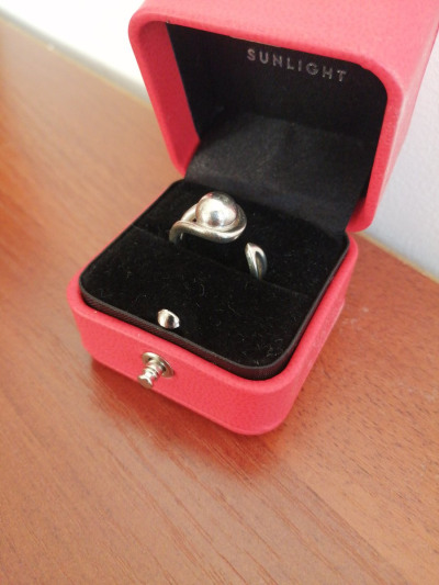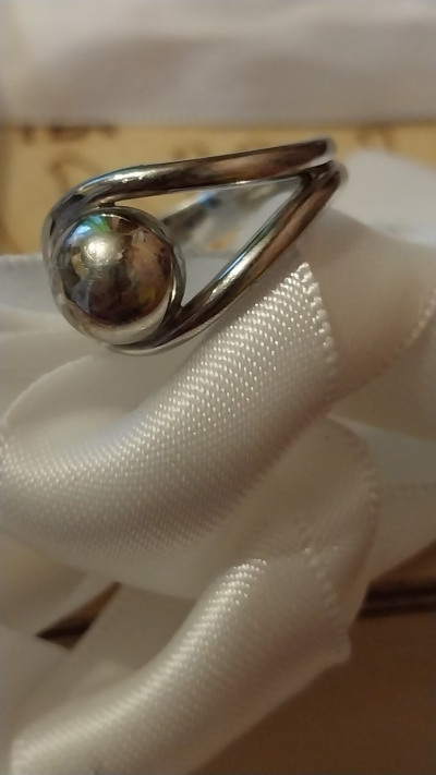 Очень нравится это кольцо. Оно приглянулось мне сразу и с тех пор не разочаровало. Всегда с удовольствием его надеваю. Оно разъёмное; это и оригинально, и удобно. Шарик не выпирает, слегка приплюснут, смотрится приятно.