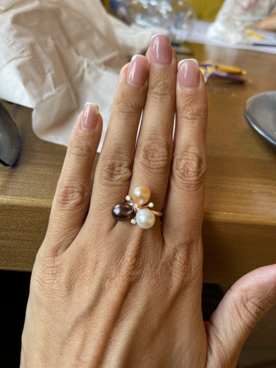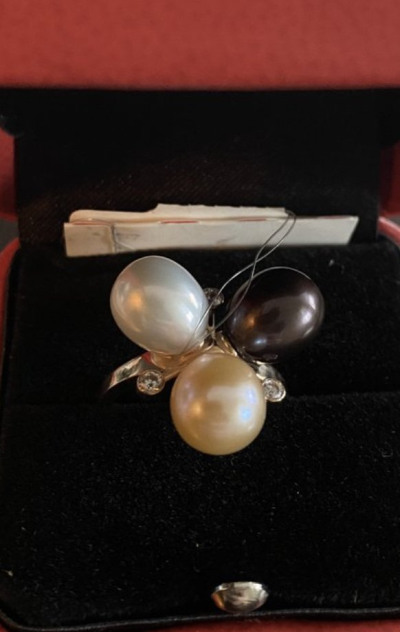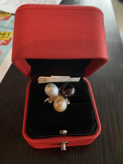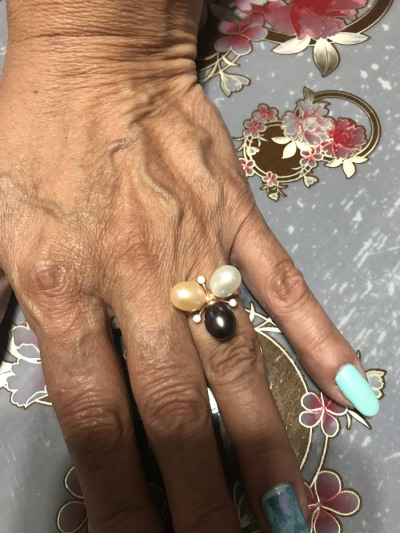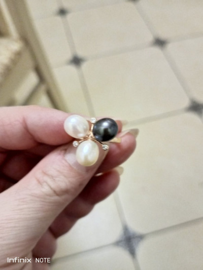 Кольцо обалденное , искала именно под чёрный жемчуг и одновременно подойдёт и под белый , в реальности смотрится ещё лучше , чем на фото