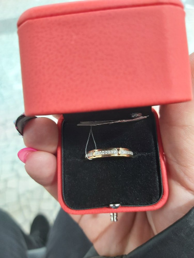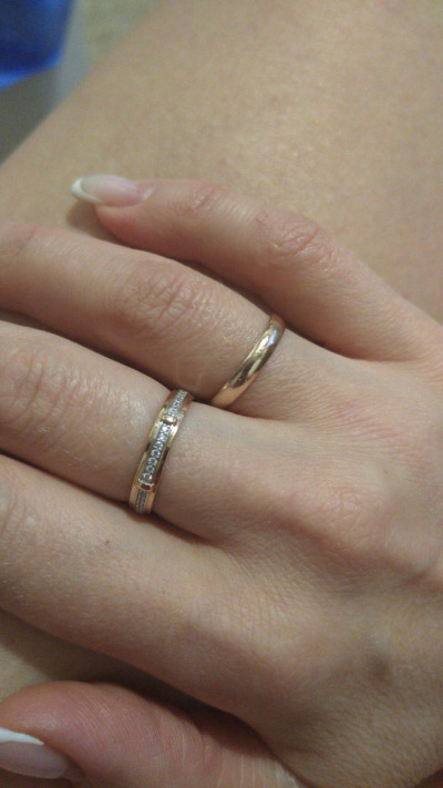 Золотое кольцо с вставками из фианитов. Камушки маленькие, нигде не цепляются. Мама довольна.