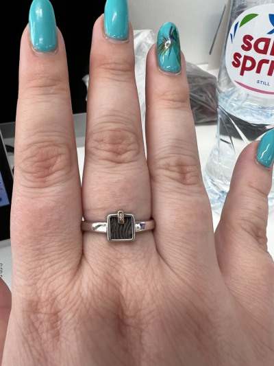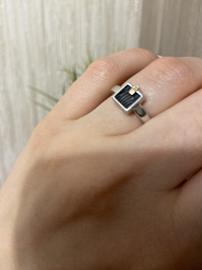 Очень красивое кольцо! За счет сочетания серебра и золота смотрится очень нежно. Пусть и маленький,но очень играющий бриллиантик