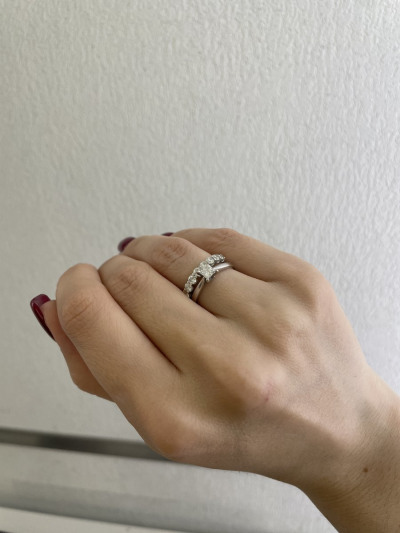 Кольцо купила к серьгам, его нужно носить единственным на руке, так как в паре с бриллиантовой дорожкой, оно теряется. ❤️