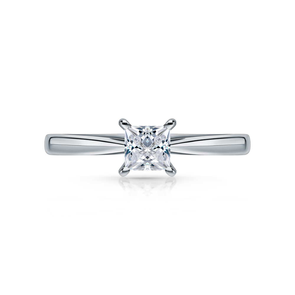 Кольцо с 1 бриллиантом природным, 0.409 карат, огранка принцесса 65 граней, цвет 4, чистота 6;