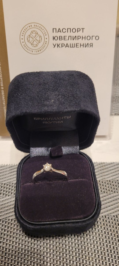 Кольцо с 1 бриллиантом природным, 0.28 карат, огранка круг 57 граней, цвет 4, чистота 5, тип огранки А;