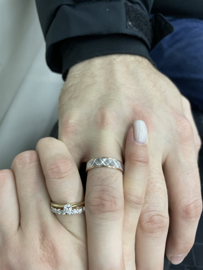 Поменяла вместо обручального , выглядит очень эффективно, в размер , бриллианты очень сверкают!