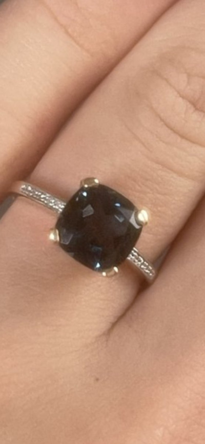 Кольцо очень красивое, камень природный сверкает и переливается своими гранями. Бриллианты сдержанно мерцают. Отличное аккуратное колечко, легкое и воздушное. Сидит отлично и на худых и пухленьких пальчиках.