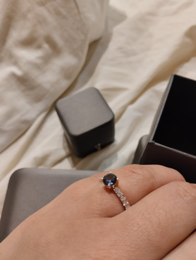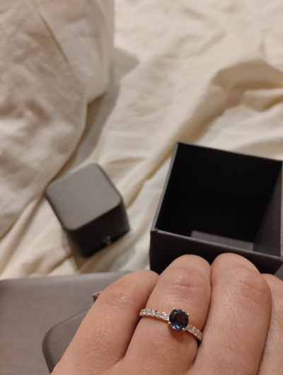 Золотое колечко с тёмно-синим топазом и бриллиантиками очень красивое, яркое, заметное. Подарок себе любимой на юбилей. Спасибо SUNLIGHT за множество акций.