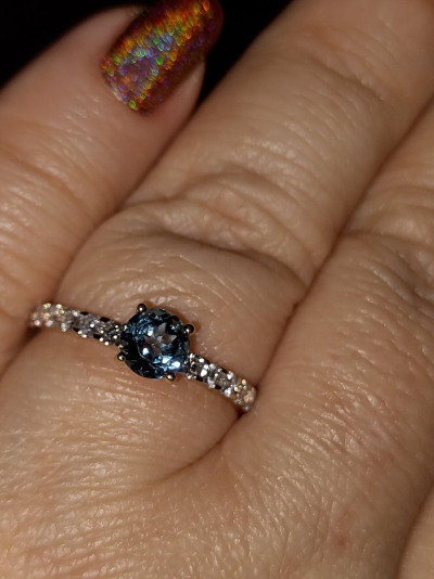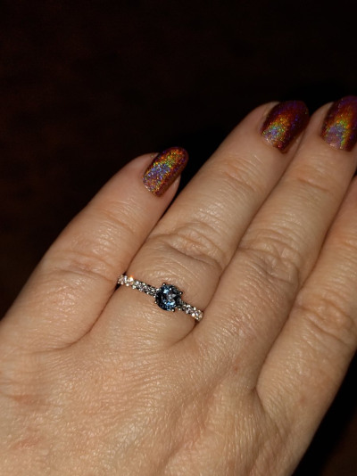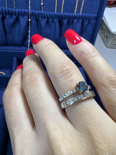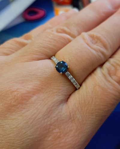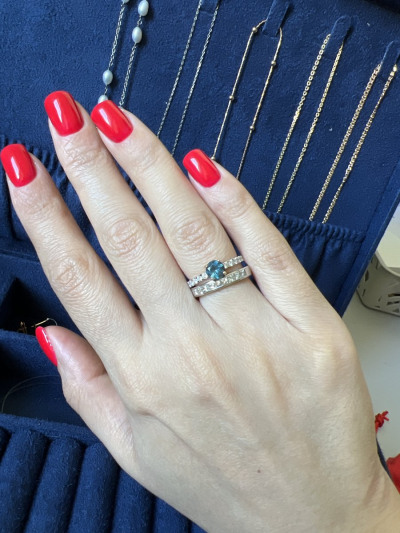Красивое кольцо,нравится именно цвет топаза лондон в обрамлении белых бриллиантов, камни не мелкие,цена для него шикарная,покупала со своими бонусами,вышло не дорого