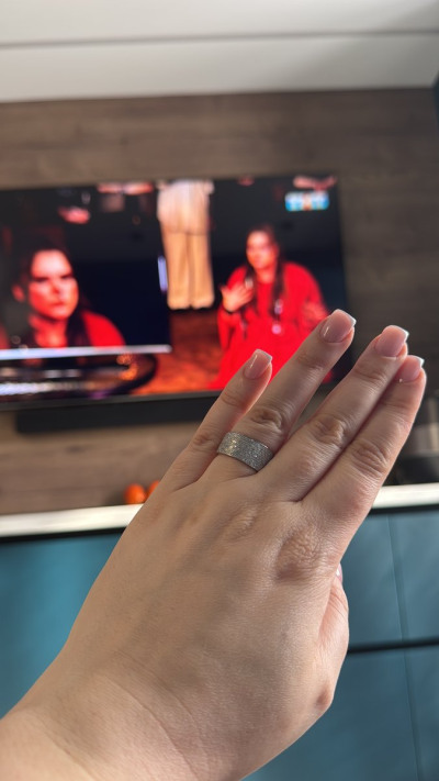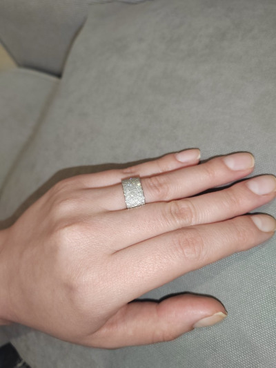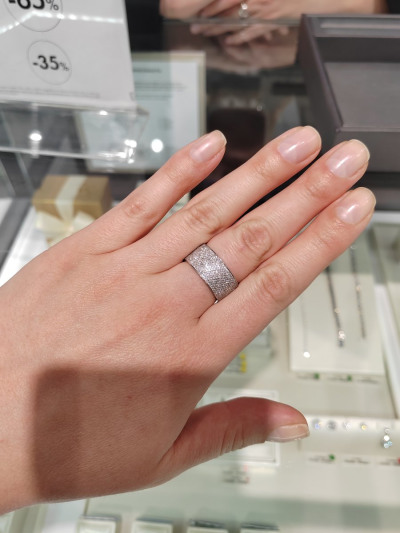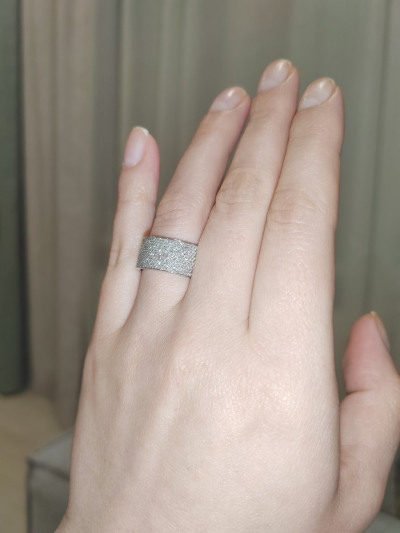 Очень хотела этот фейерверк себе, приобрела на день рождения 😍😍😍 очень красиво переливается при любом ракурсе, есть своя изюминка в бриллиантовой крошке в таком количестве - в моем кольце их 792. Нужно брать побольше на полразмера-размер больше. С обратной стороны "сетка"