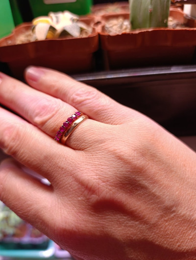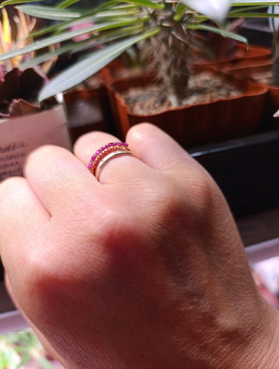Хорошее маленькое кольцо с очень-очень маленькими натуральными рубинами. Подойдёт для любителей минимализма. Сразу не заметно, но камни разные по величине, хотя в глаза это не бросается.