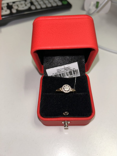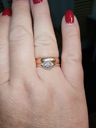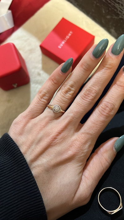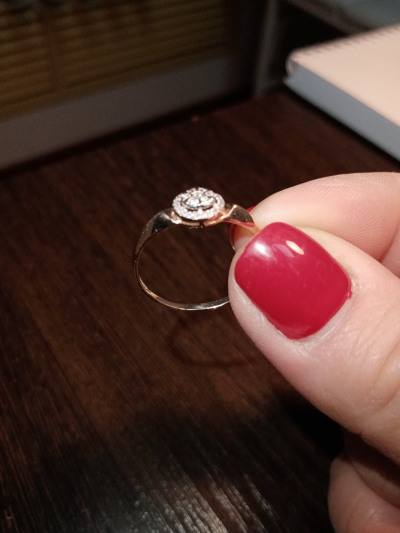 Доставка задержалась на три дня, думала уже не выкупать, но оно мне понравилось. И не пожалела, что забрала. Колечко очень милое, бриллиантики переливаются, на руке вообще не ощущается и не цепляется за одежду. Тонковато конечно, возможно помнется, но я ношу в паре с обручальным