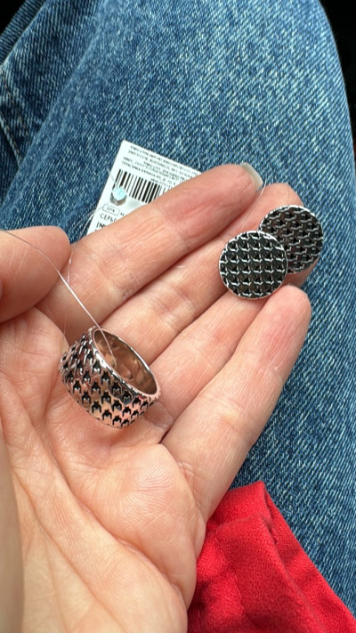 Купила кольцо в наборе с серьгами , смотрится на все 100%