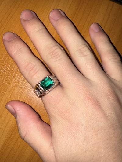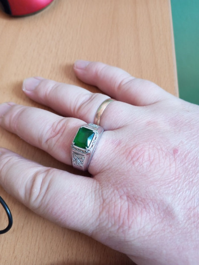 В подарок мужу заказала кольцо с вставкой фианита зеленого цвета, кольцо я б сказала изящное, пусть камень фианит но очень хороший, на солнце играет, само кольцо аккуратное, не грубое, вес соответствует, рекомендую к покупке ☝️
