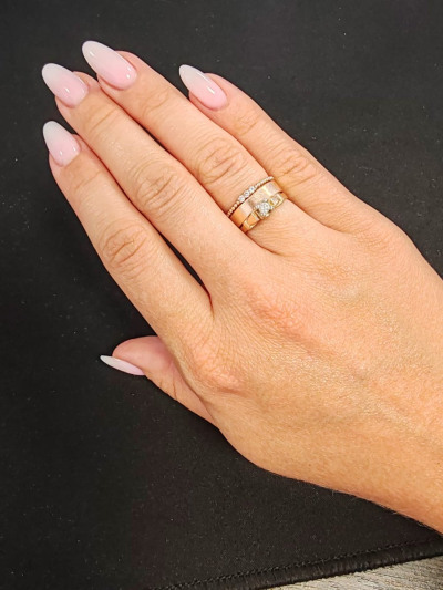 Очень красиво смотрится вместе с обручальным кольцом, специально купила, что бы носить вместе