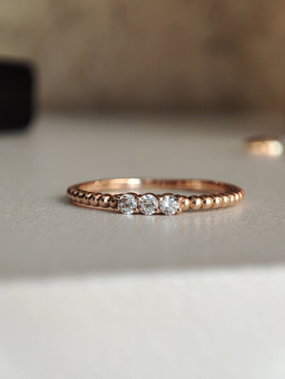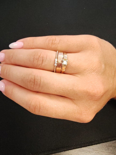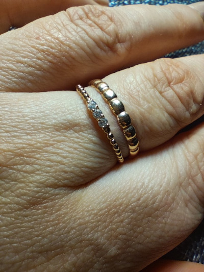 Очень симпатичное тонкое кольцо. Как будто собрано из бисера. Фианиты красиво блестят. Мне нравится как оно смотрится в паре с другим кольцом.